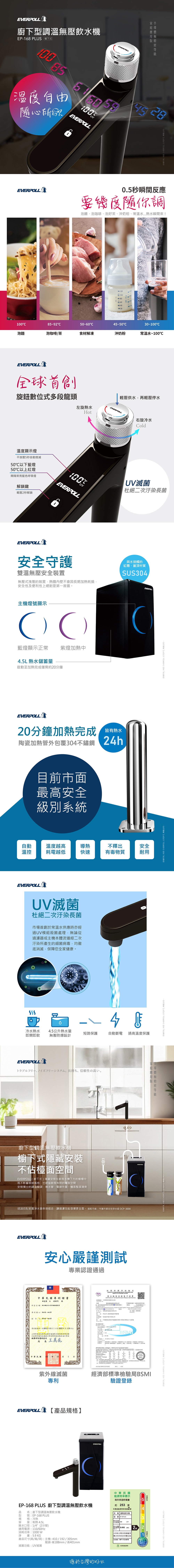 EVERPOLL | EP-168 PLUS 廚下型調溫無壓飲水機