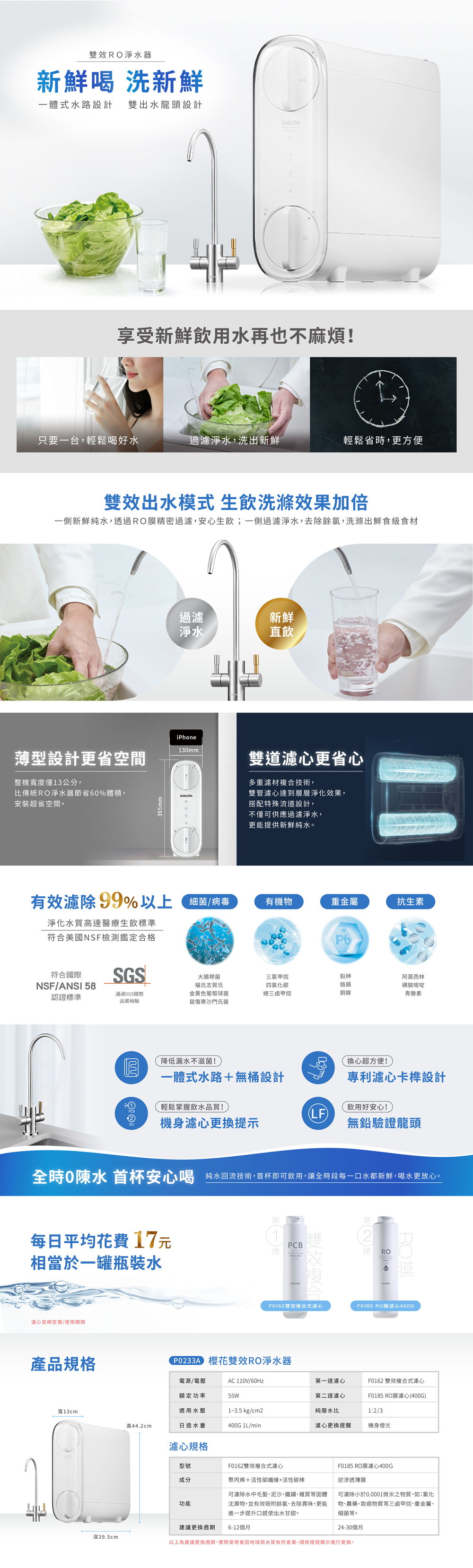 首頁 > 產品選單 > 櫻花 | P0233A 雙效RO淨水器